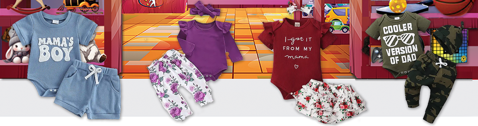 Products featured here are "Infant-Apparel Focused"and can include essential items like bodysuits (onesies), sleepers (footies/pajamas), rompers, and swaddle blankets, plus accessories such as socks, hats, bibs, and mittens, often made from soft, breathable fabrics like cotton or bamboo for sensitive skin, with popular types including organic options and everyday wear like pants, shirts, and sets, focusing on comfort, safety, and ease of diaper changes.